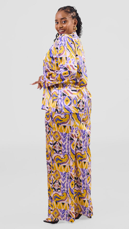 Lulu Two Piece Set - Abstract Purple and Yellow Print