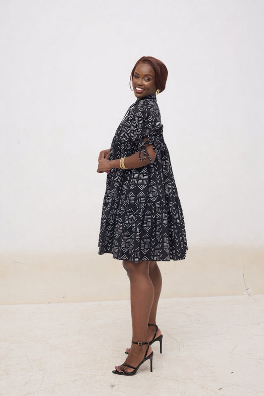 Vivienne Floral Two-piece Set - Geometric White and Black Print