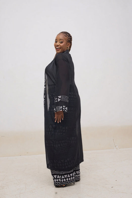 Vivienne Floral Two-piece Set - Geometric Black and White Print