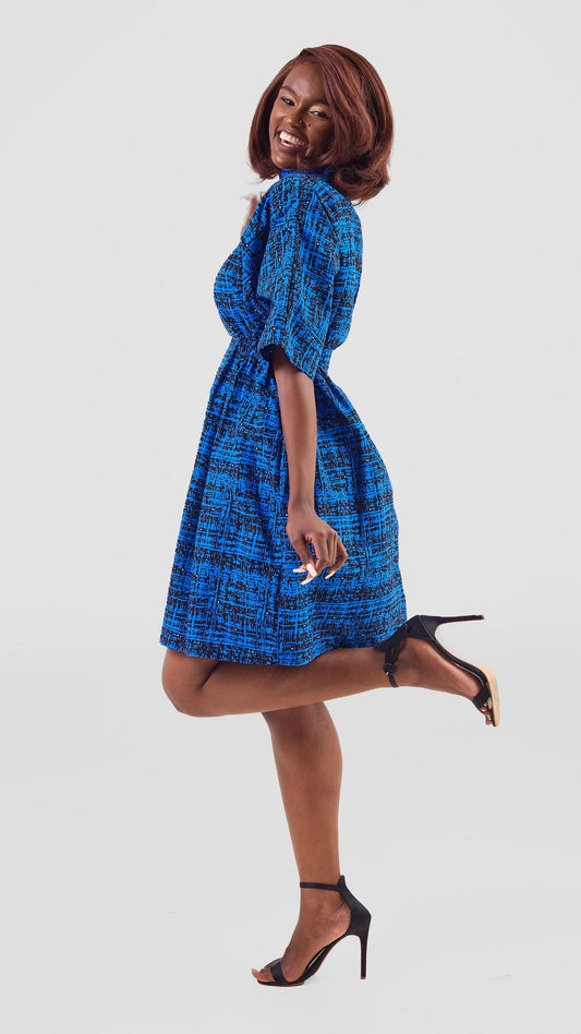 Cassandra Ankara Kaftan Dress - Abstract Blue Print