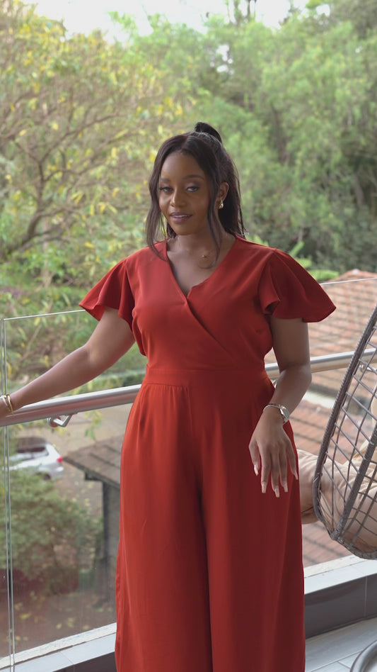 Ela Wide-Leg Jumpsuit - Rust Brown