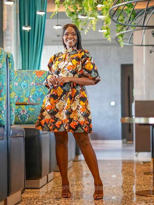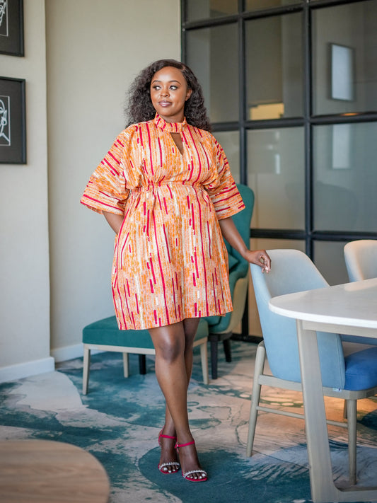 Jamila Ankara Dress - Abstract Orange Motif