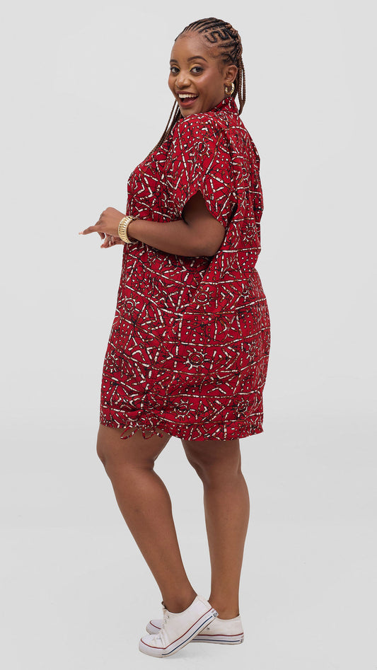 Cassandra Ankara Kaftan Dress - Abstract Red Print