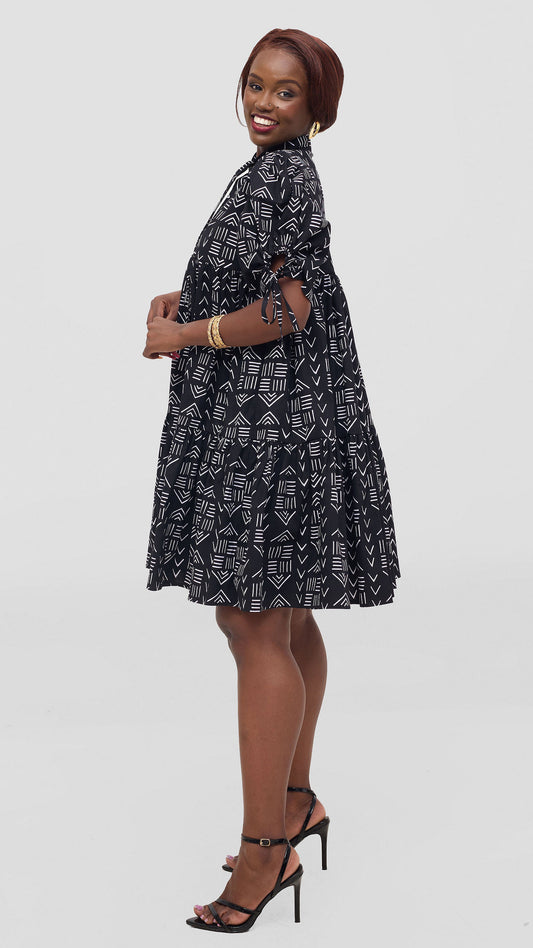 Jamila Ankara Dress - Black and White Tribal Print